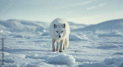 Fototapeta premium Native Arctic fox exploring vast frozen tundra area