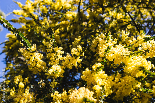 Fototapeta premium native Australian wattle plant outdoor in a sunny backyard