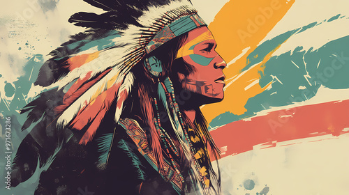 © Thiago, Fototapeta premium Native canvas. Native American. Illustration
