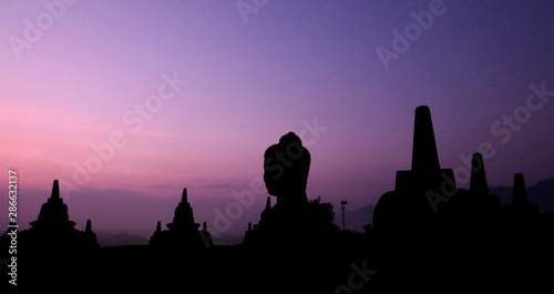 Fototapeta premium Natural amazing sunrise view at Borobudur Buddhist temple, great religious...