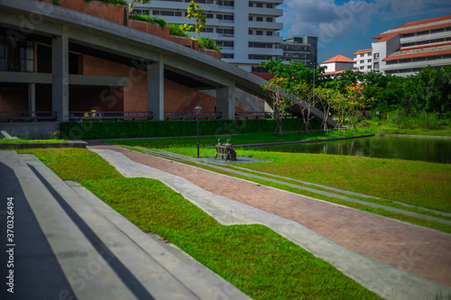 © bangprik, Fototapeta premium Natural background in the park with many kinds of plants, large stones, allow tourists to stop and take photos while traveling, the beauty of the ecosystem