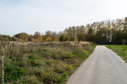 © Natalia, Naklejka premium Natural background meadow, road and trees