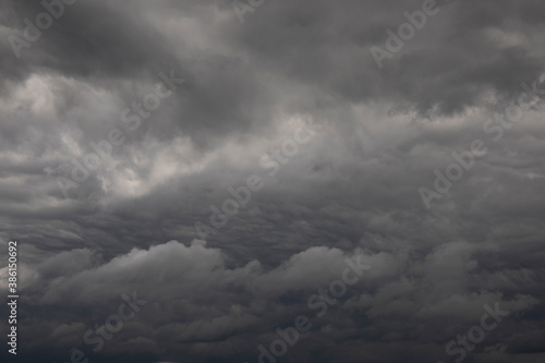 Obraz premium Natural background of dark stormy clouds in gray sky