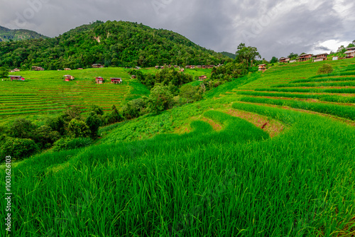 Fototapeta premium Natural background on the mountain with green rice terraces. Pa Bong Piang is...