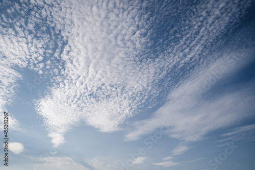 © Marevgenna, Obraz premium Natural background with blue sky and white clouds.