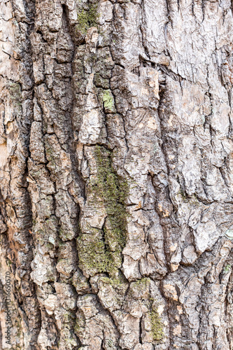 Fototapeta premium Natural background with pine tree bark covered with moss and lichen