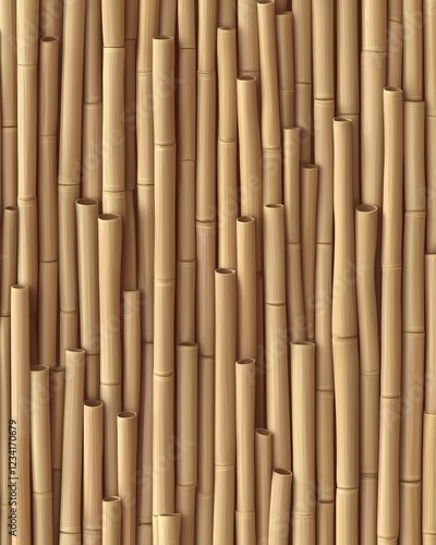 © Kittipong, Fototapeta premium Natural Bamboo Background Texture with Vertical Stems and Spaces