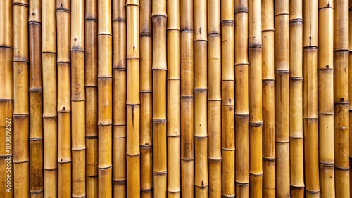 © Pluto, Fototapeta premium Natural Bamboo Wall Texture A close-up view of a vertical arrangement of bamboo stalks, showcasing the natural variations in color and texture.