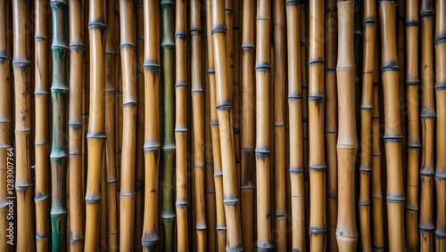 Fototapeta premium Natural bamboo wood wall texture for eco-friendly design and interior decoration backgrounds. Perfect for sustainable living themes.