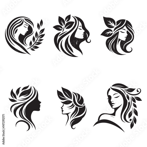 © Noor, Obraz premium Natural beauty care silhouettes icon logo set.