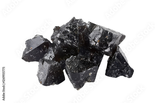 © SAM''s GALLREY, Obraz premium Natural black obsidian crystal chunks displayed artistically against a clean white surface isolated on transparent background