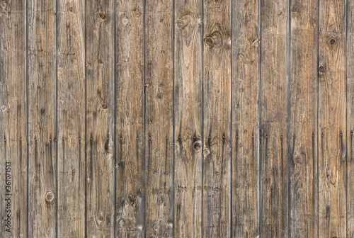 © Drepicter, Naklejka premium Natural brown barn wood wall. Wall texture background pattern.