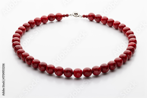 © Kot63, Obraz premium Natural coral necklace, jewelry, white background.