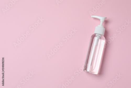 © Sunlight, Naklejka premium Natural cosmetic products. Cosmetic bottle on a pink background, top view