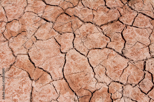 Fototapeta premium Natural dry soil background with cracks, human impact effect