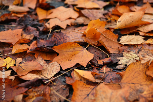 © Katerina Schneider, Fototapeta premium Natural fall foliage on the ground.