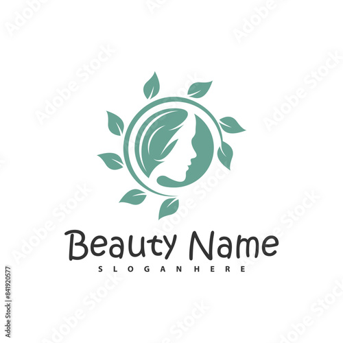 Fototapeta premium Natural Floral Beauty woman face logo design, Beauty logo design template vector