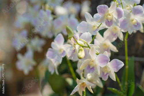 Obraz premium Natural flower background. Orchid blooming in garden under sunlight