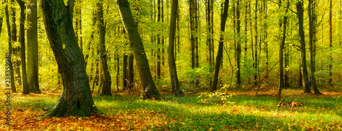 © AVTG, Fototapeta premium Natural Forest in Early Autumn Touched by the Warm Light of the Morning Sun
