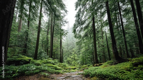 © I-D-U, Obraz premium Natural Forest Scene in Heavy Rain