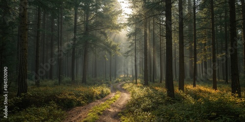 Fototapeta premium Natural forest scene with lush greenery, seasonal change, Earth Day