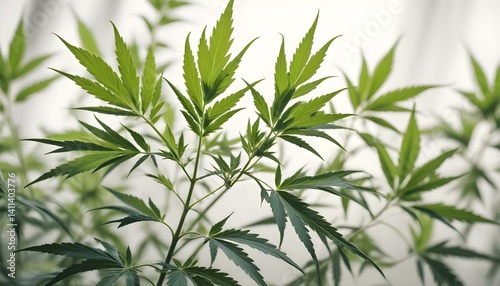 © Eyeam, Fototapeta premium Natural fresh hemp bush on a white background. Cannabis