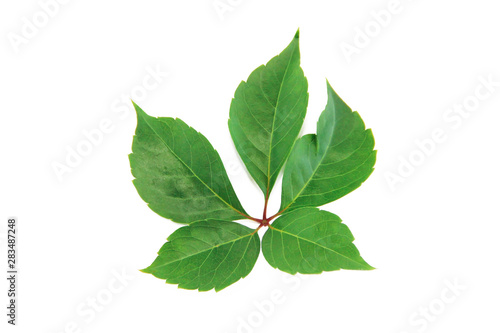 © Mari, Obraz premium natural green chestnut leaves with veins on a white background