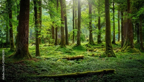 © Supardi, Fototapeta premium Natural Green Forest Background for Outdoor Nature Photography Shoots