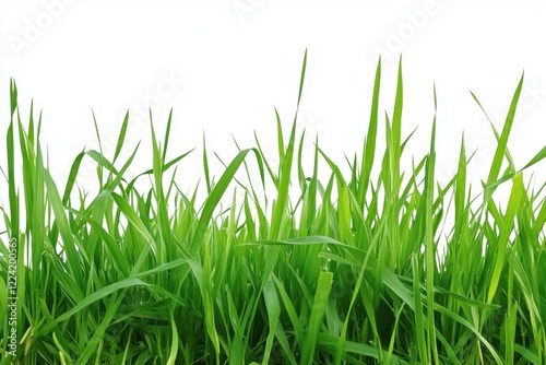© Sami, Fototapeta premium Natural Green Grass Field On White Background.