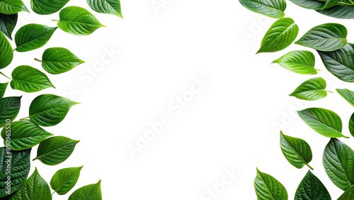 Naklejka premium Natural Green Leaves Frame on Black Background, Perfect for Eco-Friendly Product Displays and Nature-Inspired Designs