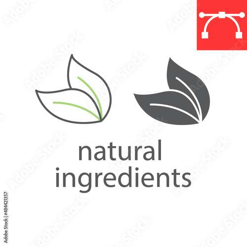 Obraz premium Natural ingredients line and glyph icon, ecological and environmental, leaf...