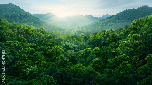Fototapeta premium Natural landscape exploration lush forests aerial view serene environment...