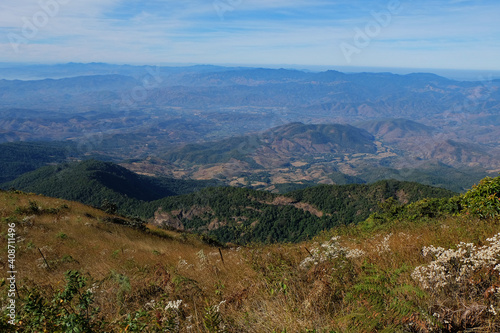 © chettarin, Obraz premium Natural landscape of green mountain range with cloudy blue sky