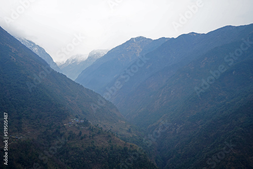 © chettarin, Fototapeta premium Natural landscape of snowy and rocky mountain range with cloudy sky