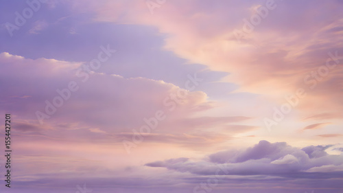 Fototapeta premium Natural lavender sky with clouds image. Bright blue and lavender sky with...
