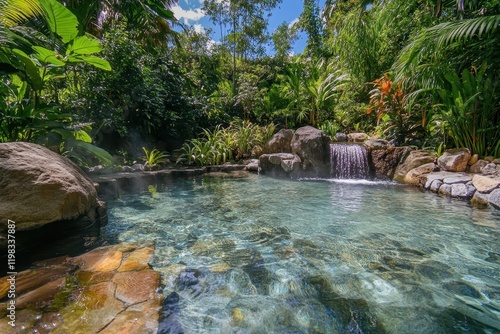 © VolumeThings, Naklejka premium Natural mineral water in park hot springs