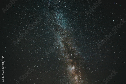 © Great Brut Here, Obraz premium Natural Night Sky Stars With Milky Way Galaxy. Real Photo Starry Sky Background