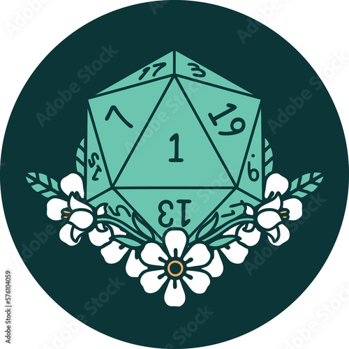Fototapeta premium natural one dice roll with floral elements icon
