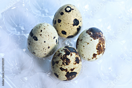 © Jasmin, Fototapeta premium natural organic quail eggs on a white background