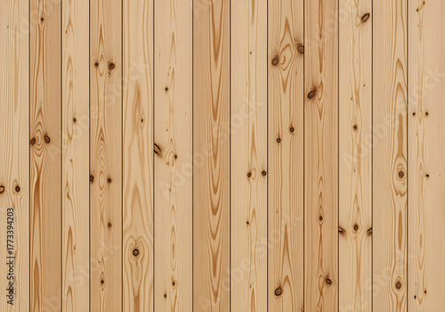 © Henhen, Fototapeta premium Natural Pine Wood Planks Texture Background with Prominent Knots and Vertical Grains