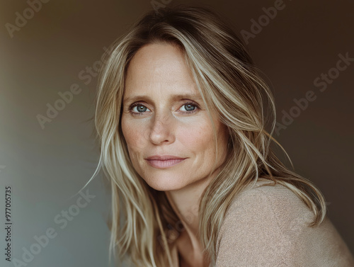 Fototapeta premium Natural Portrait of a Confident Woman with Blonde Hair in Minimalist...