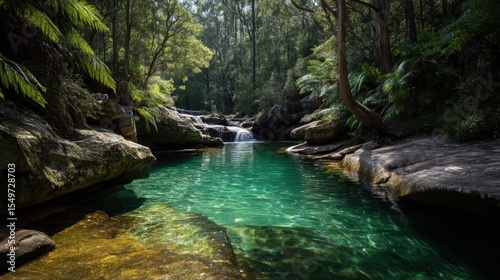 © Svitlana, Naklejka premium Natural rock pool formed by waterfall