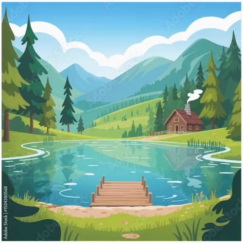 Naklejka premium natural scenery photo image tree river sky hill flower cloud home.eps