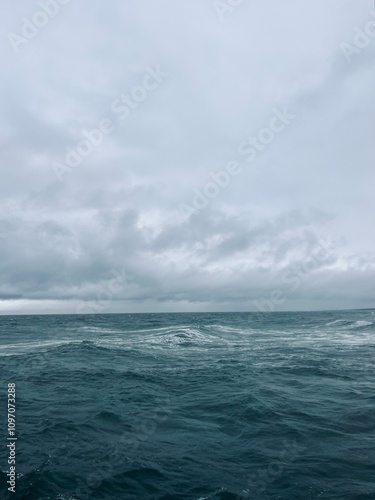 © Oksana, Fototapeta premium Natural seascape background, cloudy sea horizon
