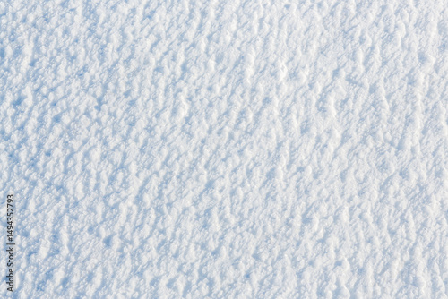 Fototapeta premium Natural snow texture. The surface of an icy snow crust. Snowy ground. Winter background with snow patterns. Perfect for Christmas and New Year design. Closeup top view.