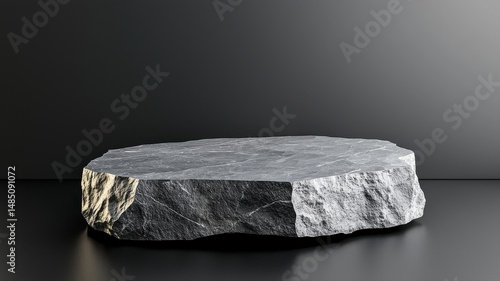 Naklejka premium Natural Stone Podium for Product Presentation on Black Background stone podium presentation rock raw