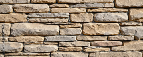 Fototapeta premium Natural stone wall texture with various shapes and colors, perfect for design projects