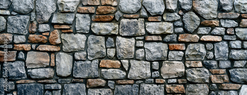 © Alex, Fototapeta premium Natural stone wall with mortar close up background