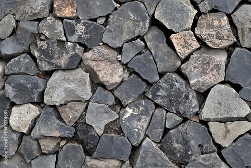 Obraz premium Natural Stone Wall with Varied Gray Tones and Irregular Stone Shapes : Generative AI