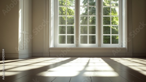 Obraz premium Natural sunlight through windows creates soft floor shadows ar 169